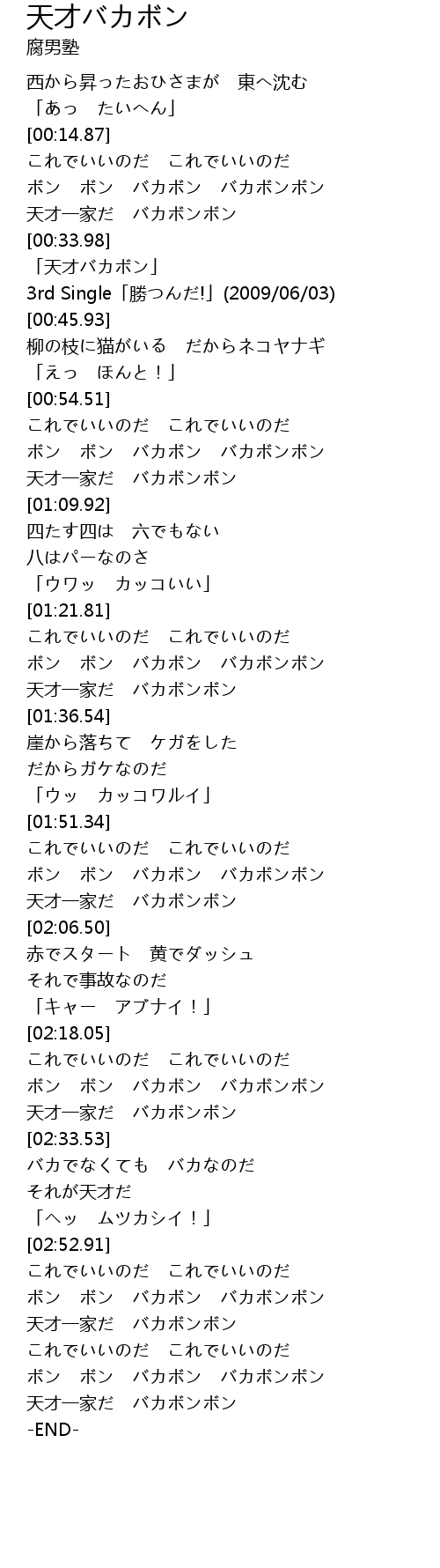 | [00:15.19] | これでいいのだ これでいいのだ |