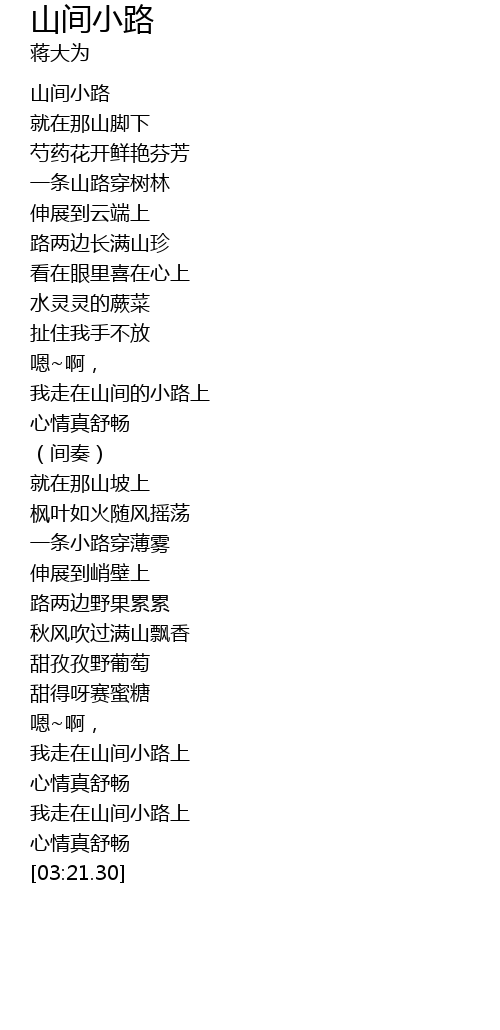 | [00:02.09] | shān jiān xiǎo lù |