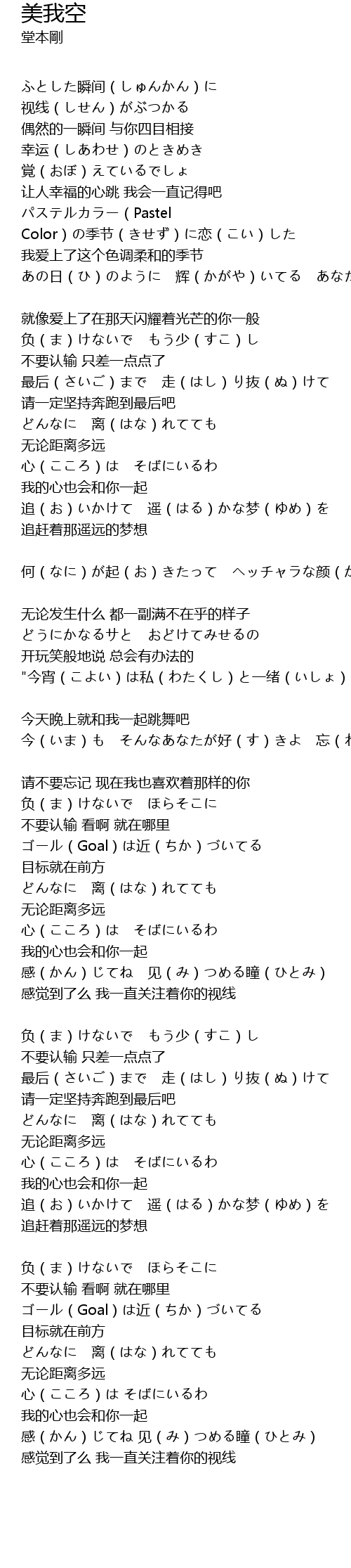 | [00:11.01] | ふとした瞬间(しゅんかん)に 视线(しせん)がぶつかる |