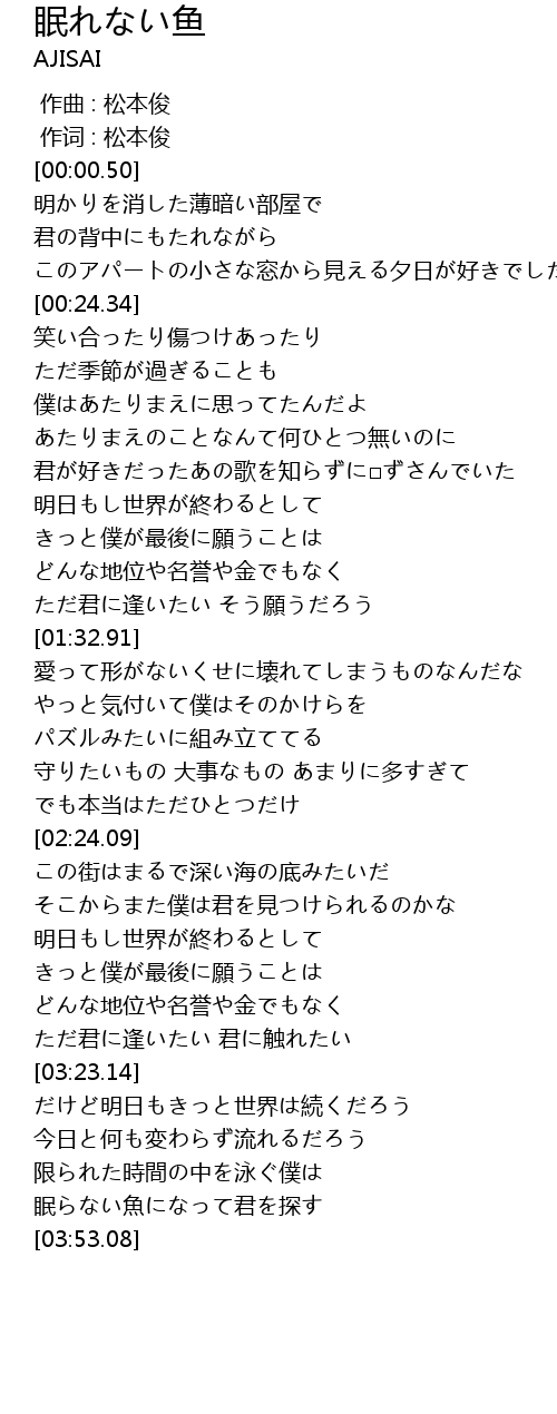 | [03:45.25] | 眠らない魚になって君を探す |