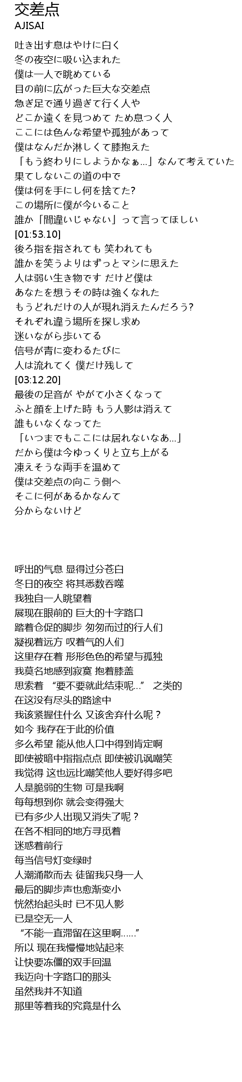 | [00:31.94] | 目の前に広がった巨大な交差点 |