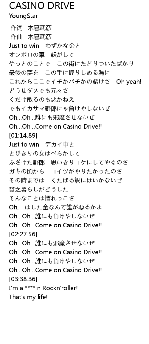 | [03:30.15] | Oh Oh Come on Casino Drive!! |