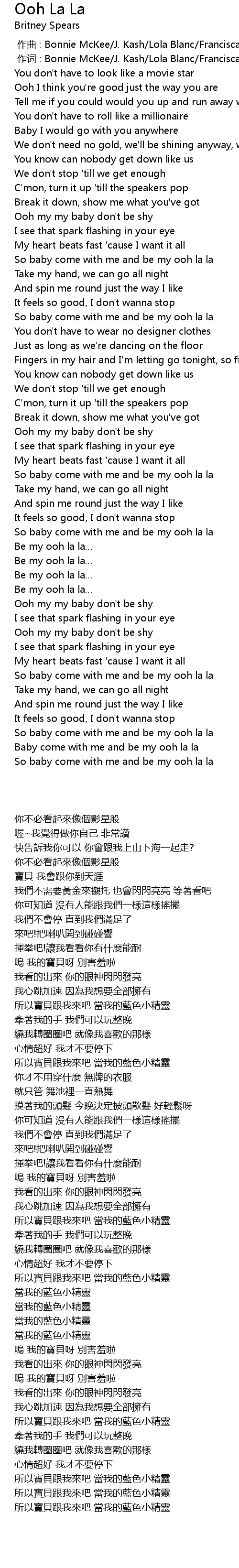 | [02:14.739] | So baby come with me and be my ooh la la |