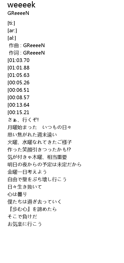 | [00:00.00] | zuò qǔ : GReeeeN |