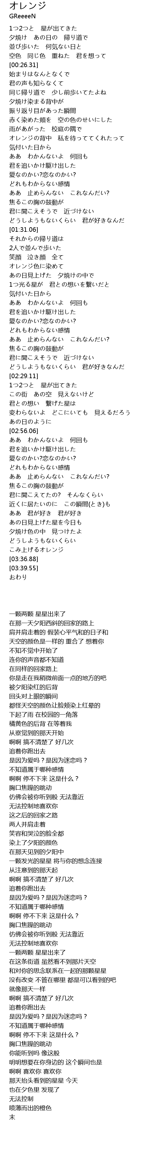 | [03:32.67] | こみ上げるオレンジ |