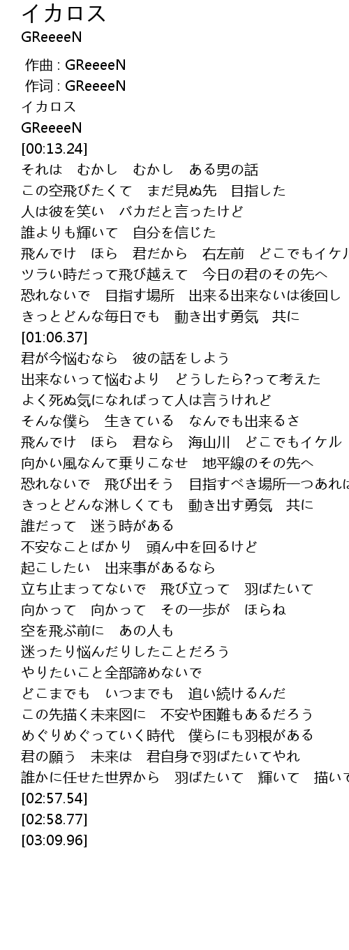 | [00:00.00] | zuò qǔ : GReeeeN |