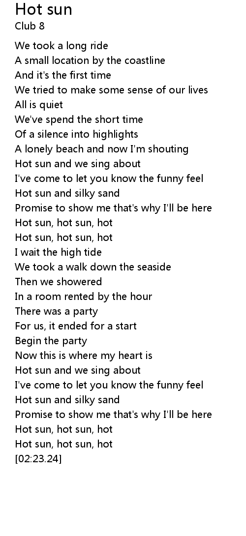Hot sun, hot sun, hot |