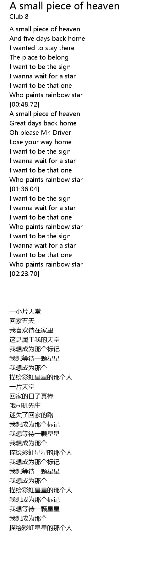 A small piece of heaven Lyrics