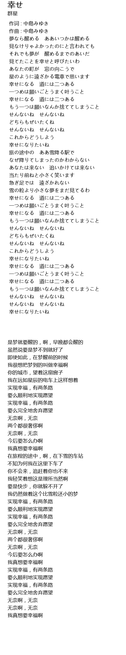 作词 : 中島みゆき |