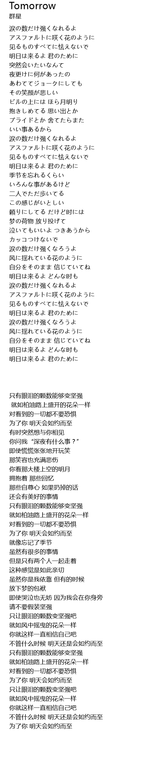 涙の数だけ强くなれるよ |