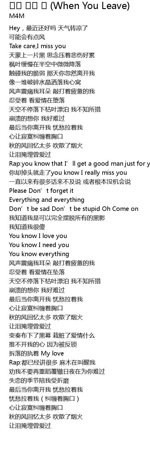 | nǐ què diào tóu jiù zǒu le you know I really miss you | |