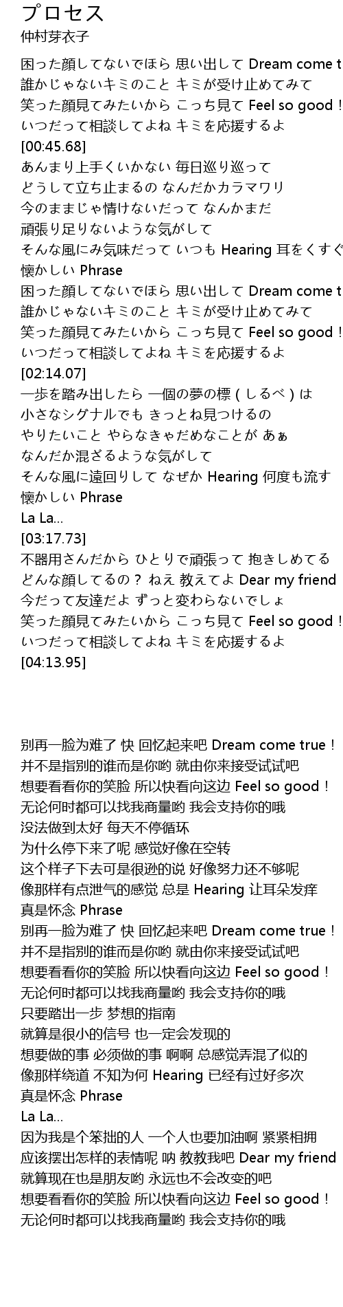 | [01:59.46] | 笑った顔見てみたいから こっち見て Feel so good! |