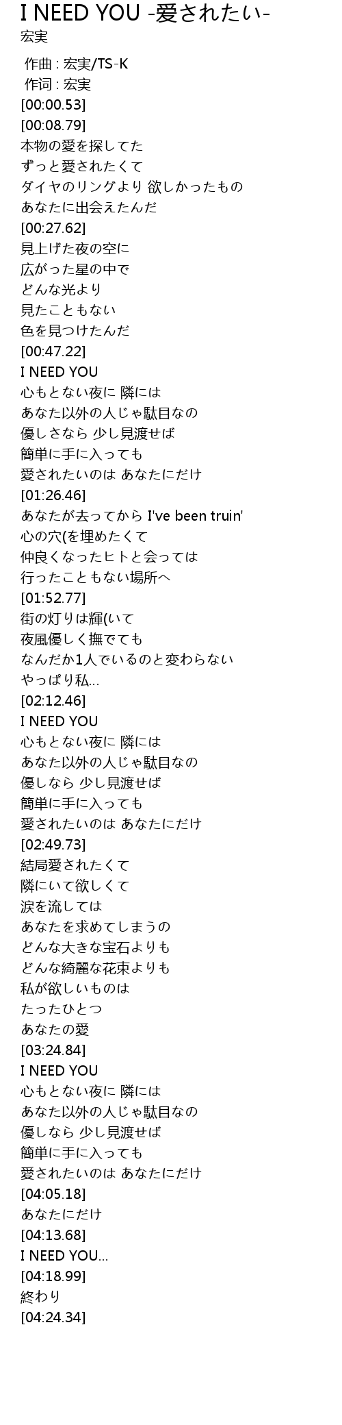 | [04:16.79] | I NEED YOU... |