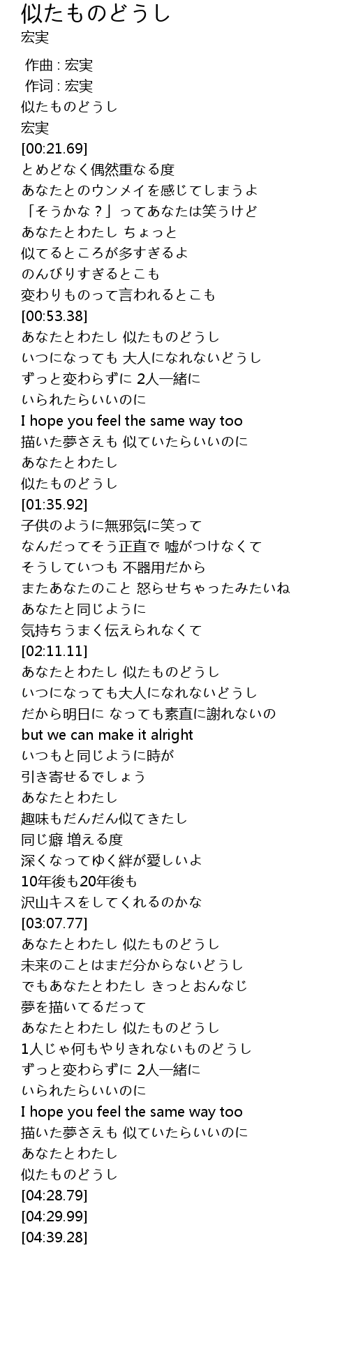 | [02:12.39] | あなたとわたし 似たものどうし |