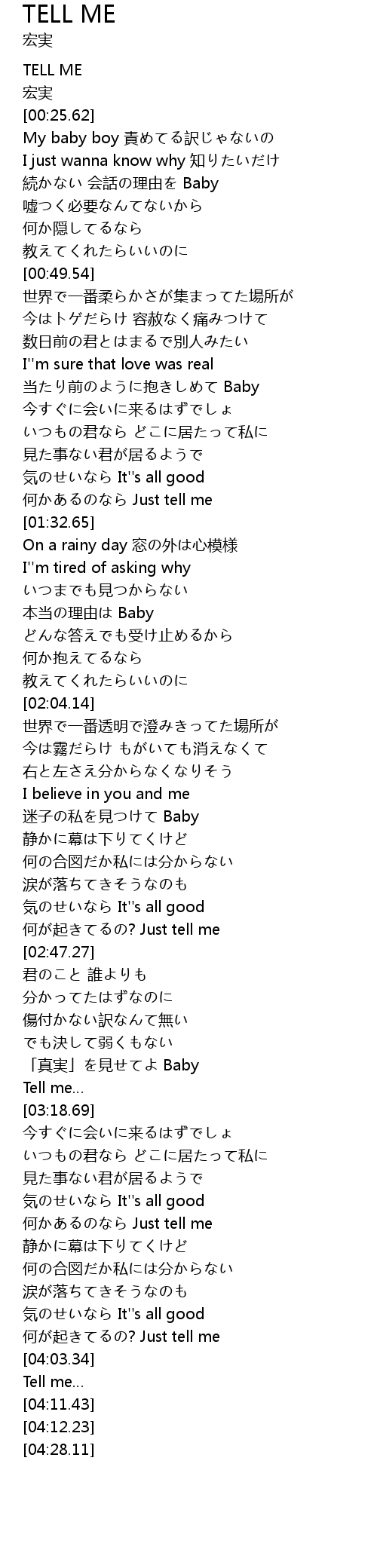 | [04:03.75] | Tell me |