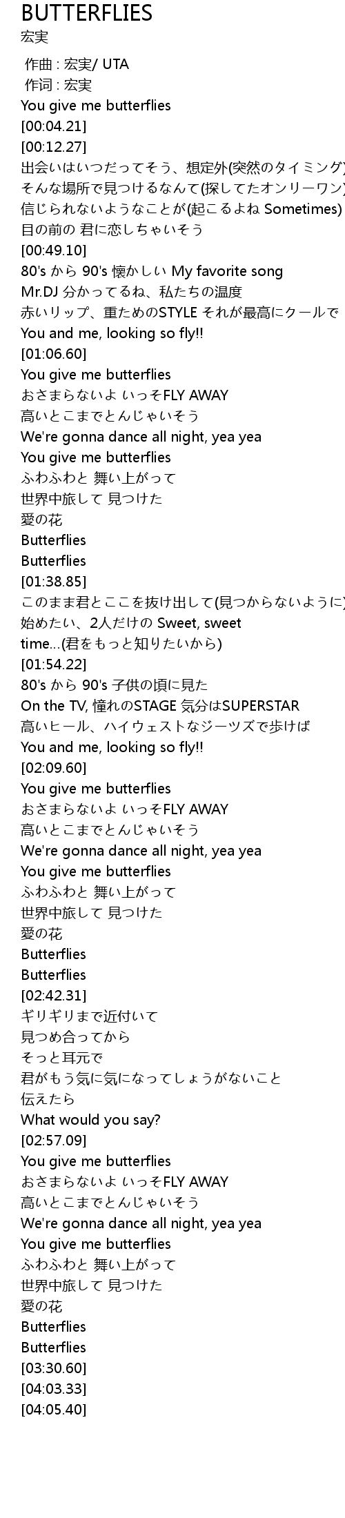 | [02:13.61] | おさまらないよ いっそFLY AWAY |