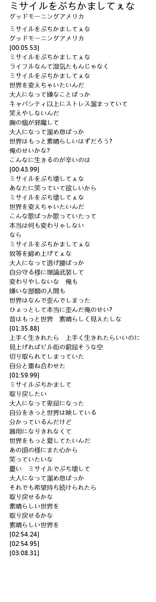 | [02:00.92] | ミサイルぶちかまして |