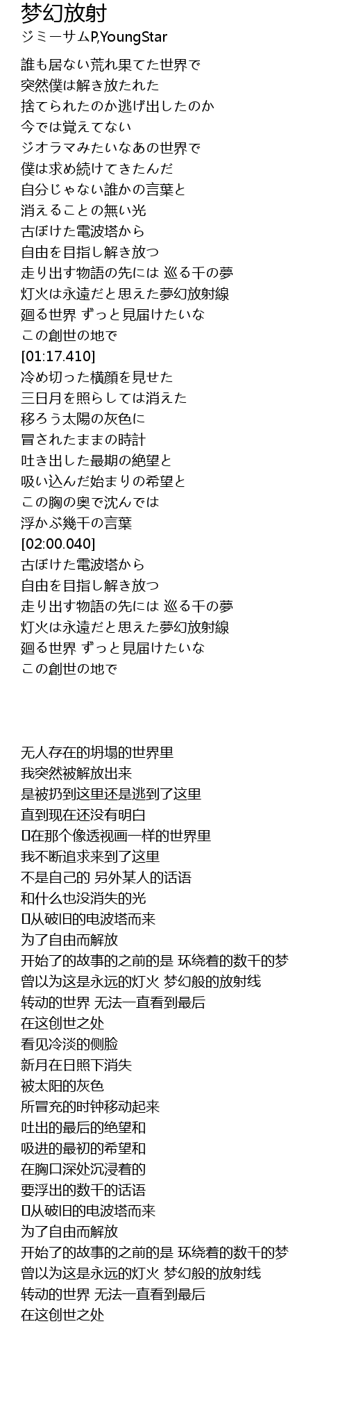 | [02:58.190] | 灯火は永遠だと思えた夢幻放射線 |