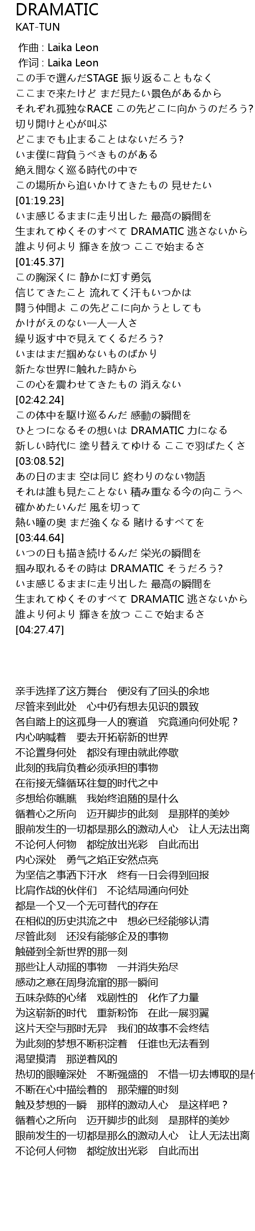 | [04:07.66] | 生まれてゆくそのすべて DRAMATIC 逃さないから |