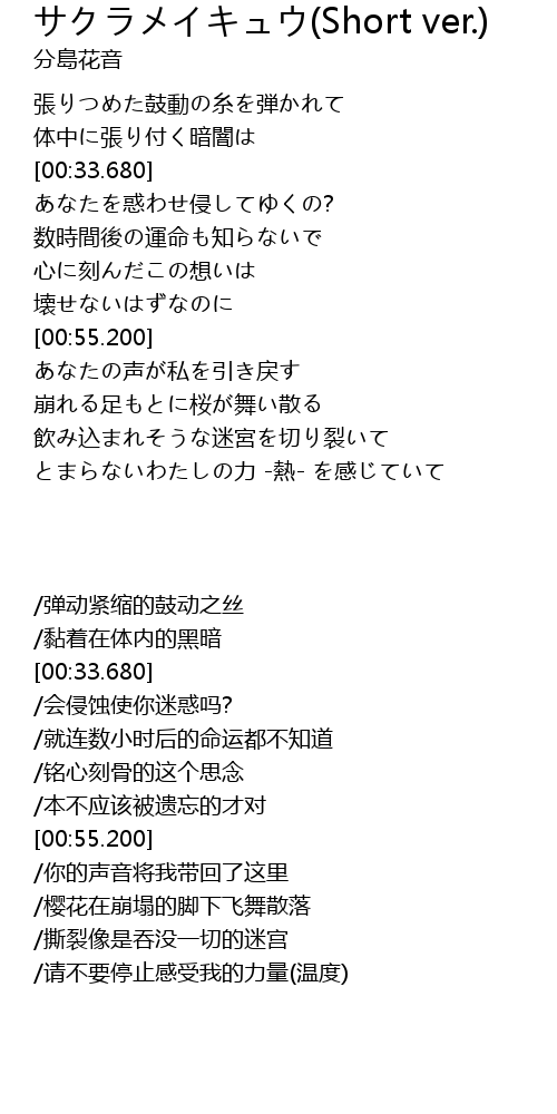 | [01:02.070] | 崩れる足もとに桜が舞い散る |