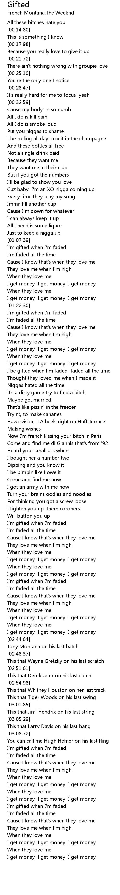 | [01:36.09] | I be gifted when I' m faded faded all the time |