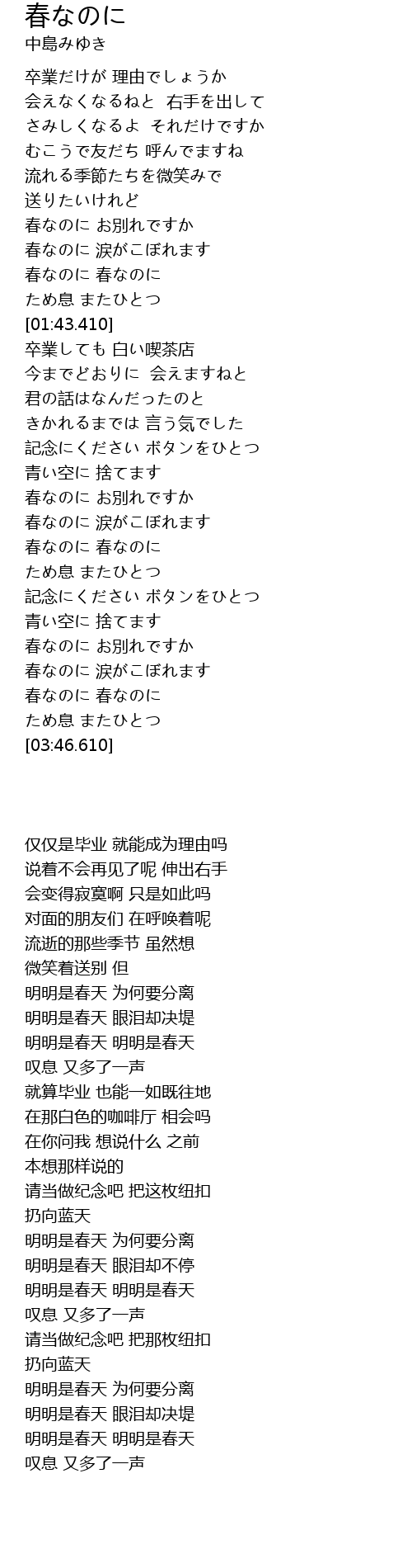 春なのに お別れですか |