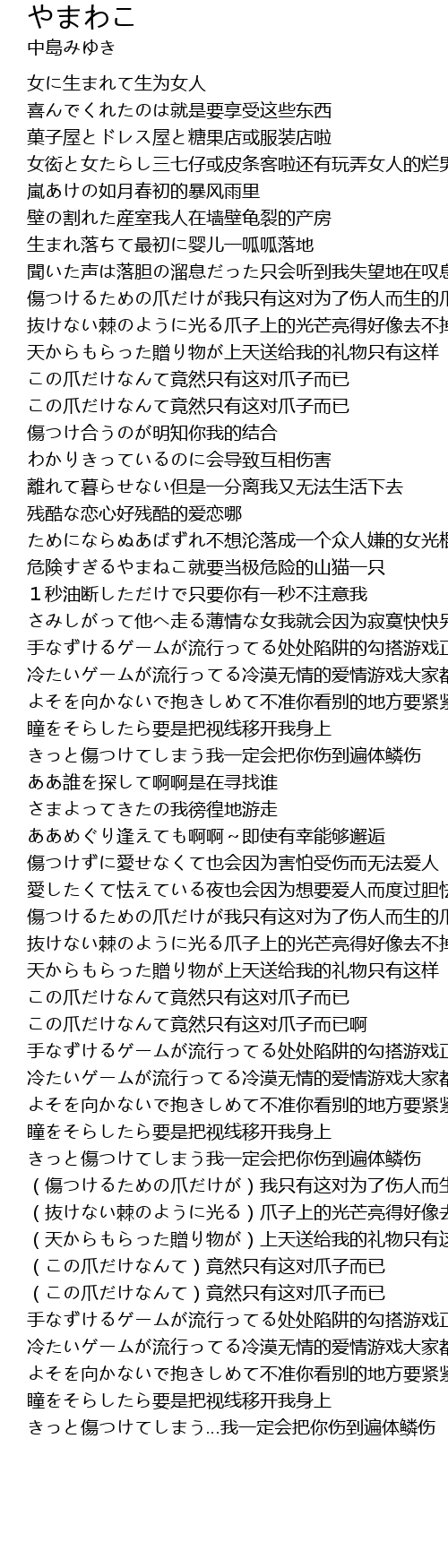 | [02:45.500] | 傷つけるための爪だけが我只有这对为了伤人而生的爪子 |