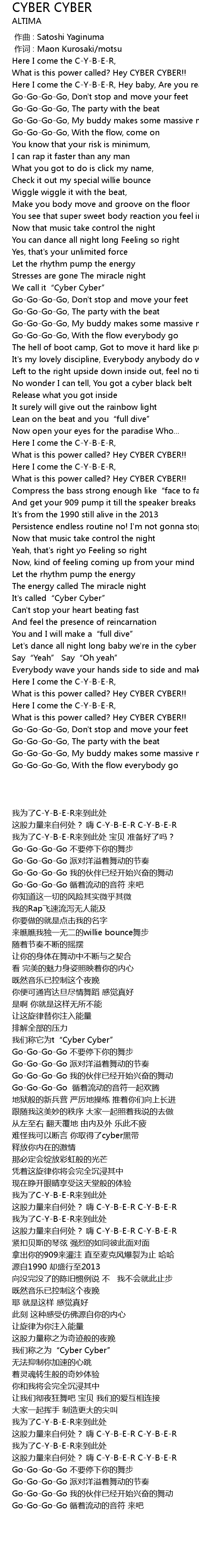 | [00:07.620] | Here I come the C-Y-B-E-R, Hey baby, Are you ready? |