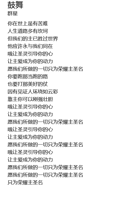 | [00:46.12] | 愿我们所做的一切只为荣耀主圣名 |