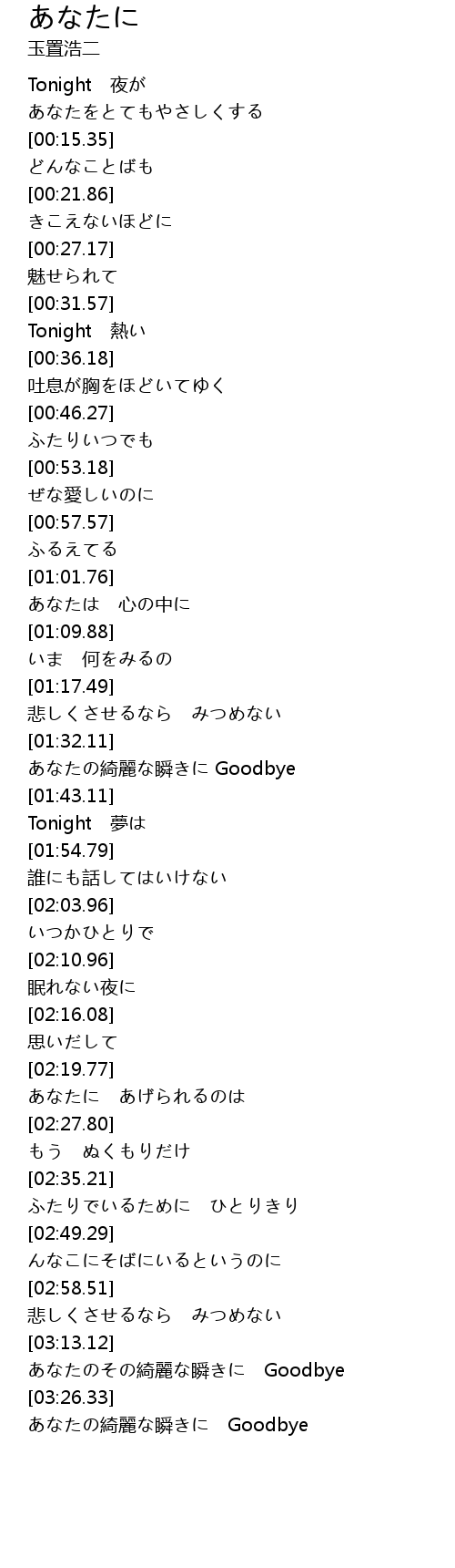 | [03:39.51] | あなたの綺麗な瞬きに Goodbye |