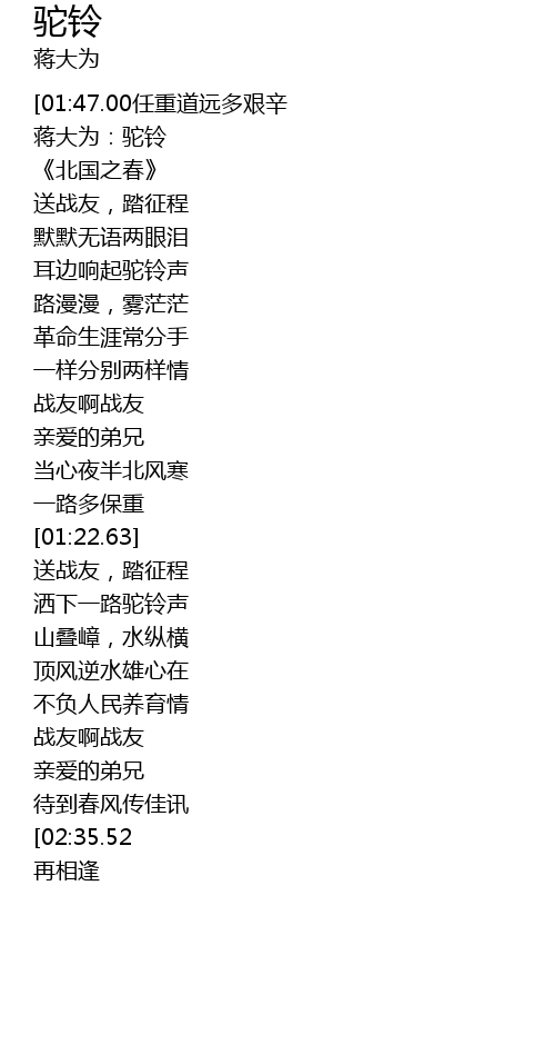 | [00:17.03] | 蒋大为:驼铃 |