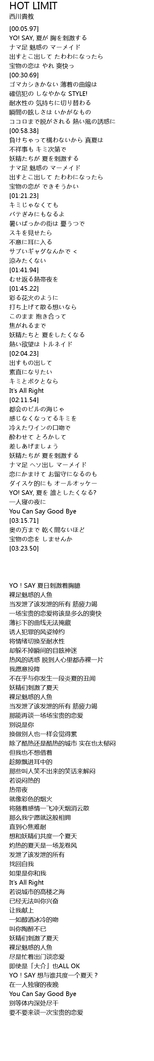 | [03:09.47] | YO! SAY, 夏を 誰としたくなる? |