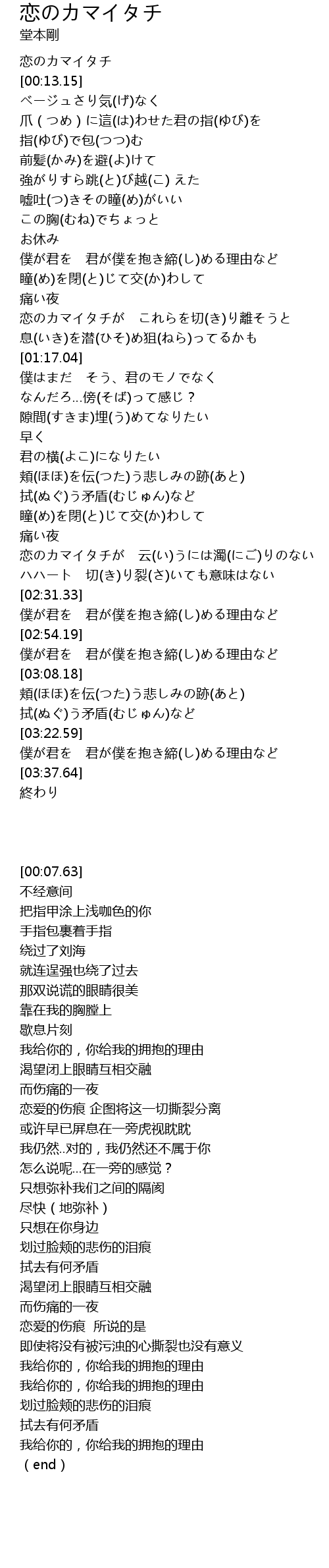 | [01:04.74] | 恋のカマイタチが これらを切(き)り離そうと |