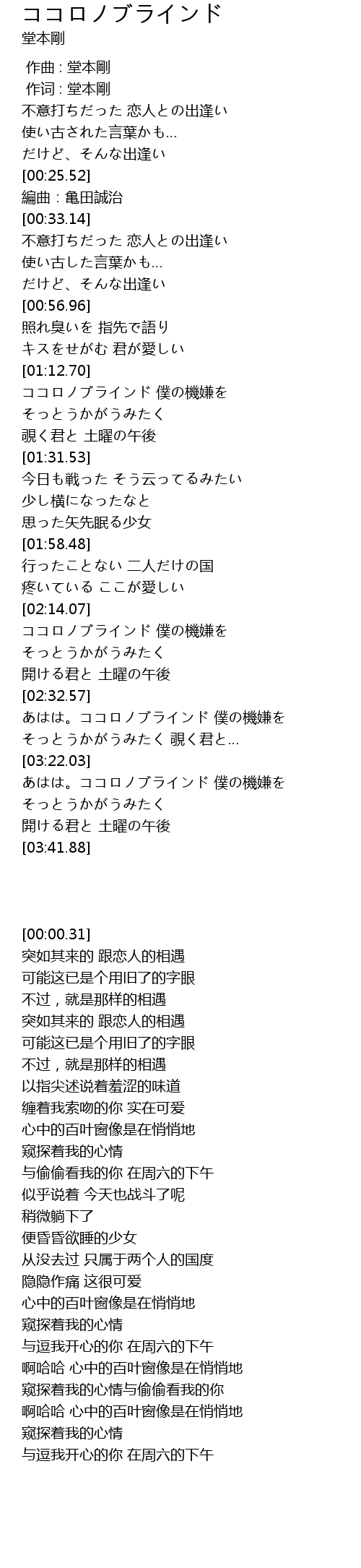 | [03:34.99] | 開ける君と 土曜の午後 |