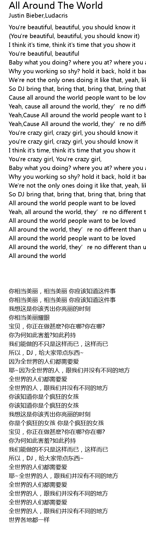 | [00:53.620] | Yeah, Cause All around the world people want to be loved |