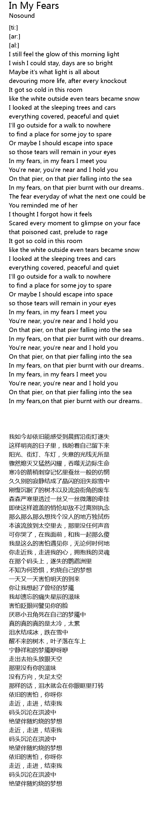 In my fears, in my fears I meet you |