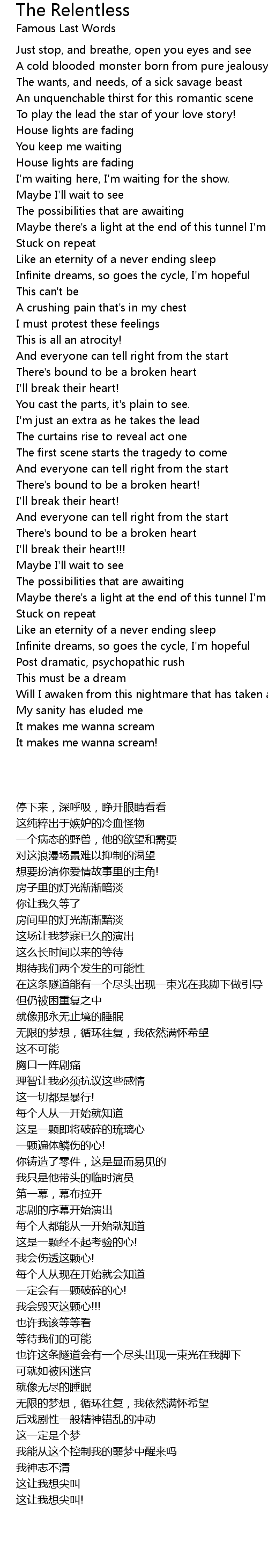 A crushing pain that's in my chest |