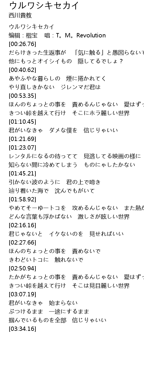 | [00:09.98] | ウルワシキセカイ |