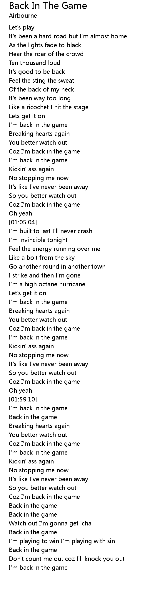 Coz I'm back in the game |