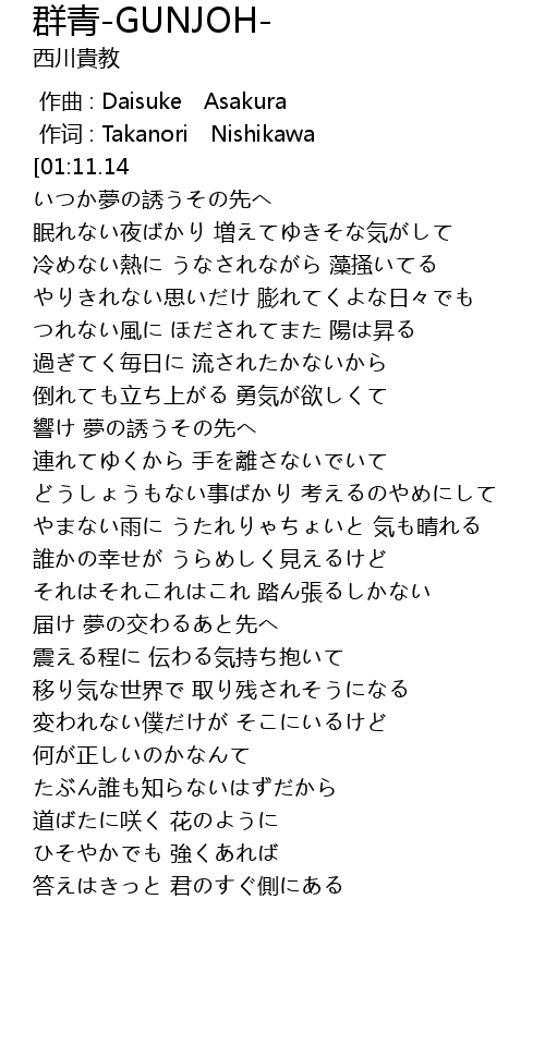 | [00:00.08] | zuo ci : Takanori Nishikawa |