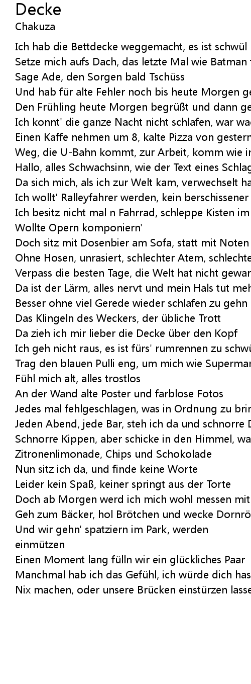 | Hallo, alles Schwachsinn, wie der Text eines Schlagers | |