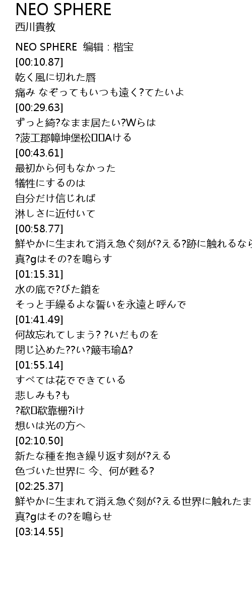 | [00:06.54] | NEO SPHERE biān jí: kǎi bǎo |