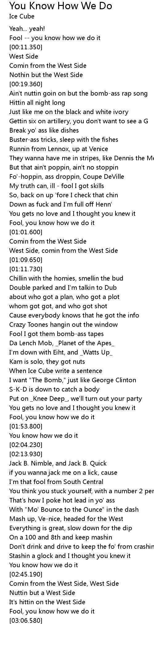 | [00:59.730] | Fool, you know how we do it |