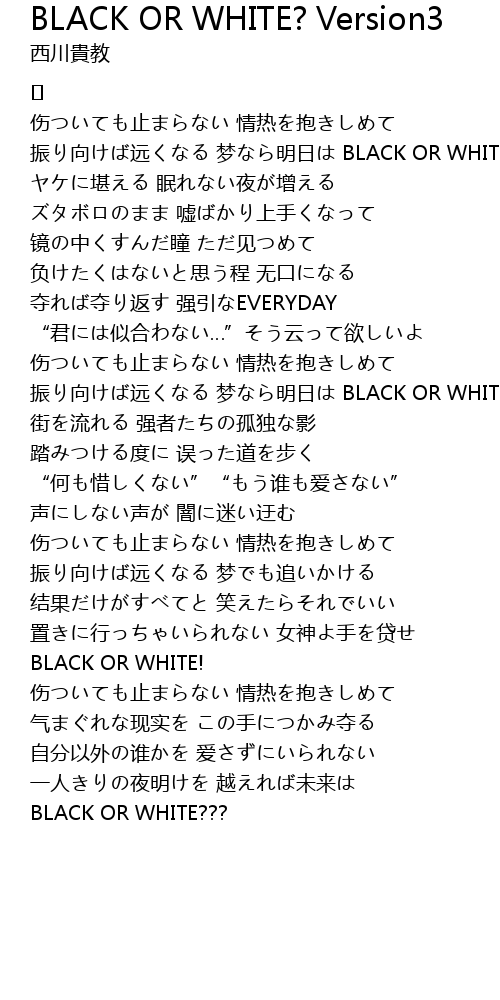 | 振り向けば远くなる 梦なら明日は BLACK OR WHITE? | |