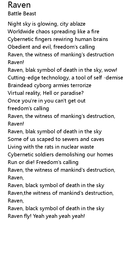 Raven Lyrics