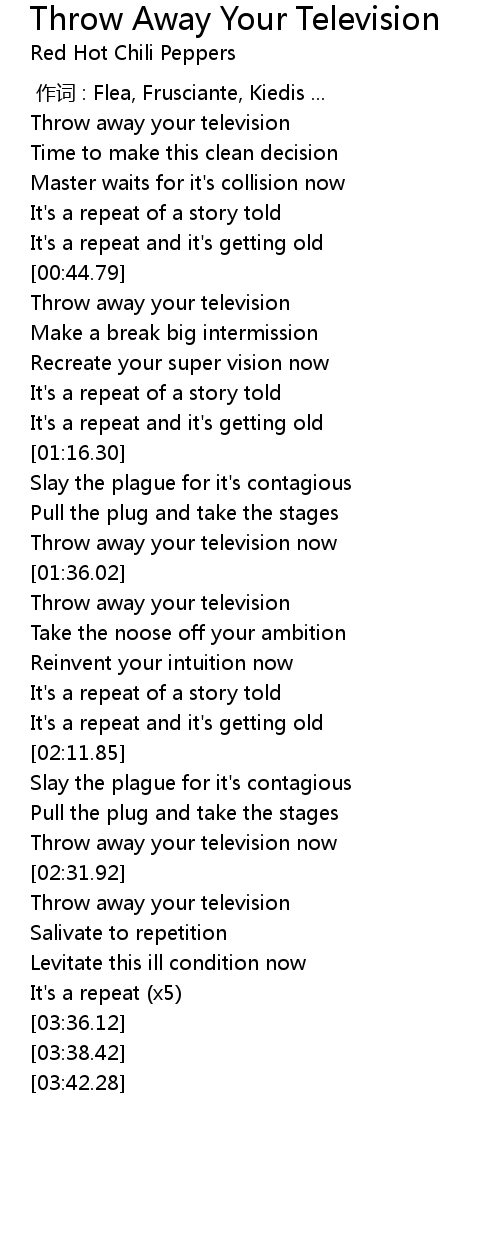 | [00:00.00] | 作词 : Flea, Frusciante, Kiedis ... |