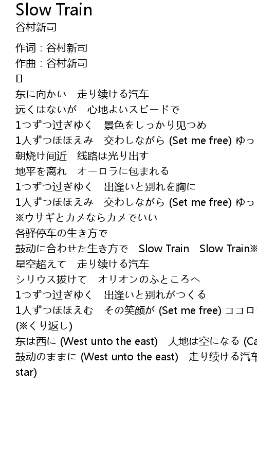 | 鼓动に合わせた生き方で Slow Train Slow Train※ | |