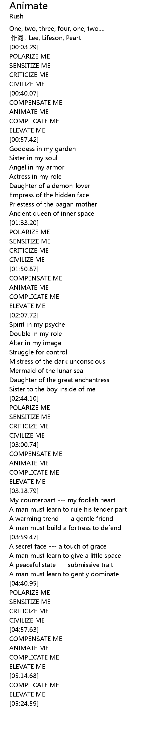 | [00:00.00] | 作词 : Lee, Lifeson, Peart |