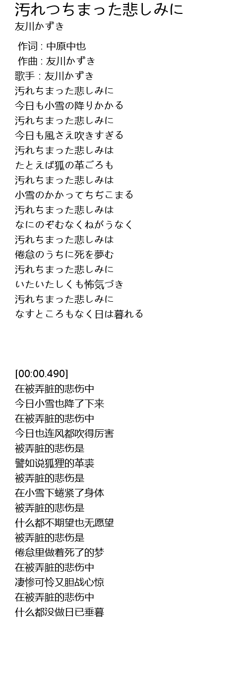 | [02:02.460] | 汚れちまった悲しみに |
