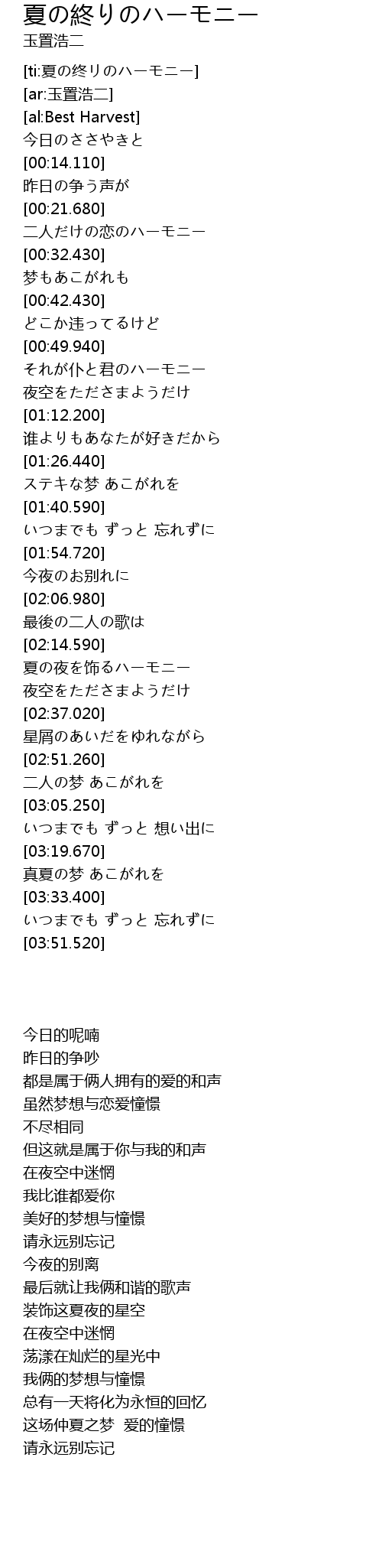 [ti:夏の终リのハーモニー] |